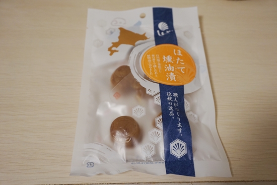 「帆立屋しんや」の名物「ほたて燻油漬」。北見市常呂町の名産品巡り。